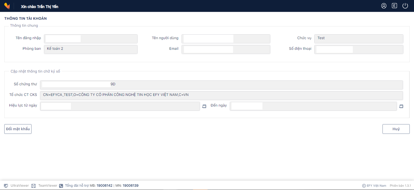 Mục Cập nhật thông tin chữ ký số: Với NLĐ ký OTP/Chữ ký ảnh thì bỏ qua thông tin này. Đây là thông tin CKS của NLĐ được tự động cập nhật khi NLĐ được cấp CKS EFY-eCONTRACT ký HĐLĐ.